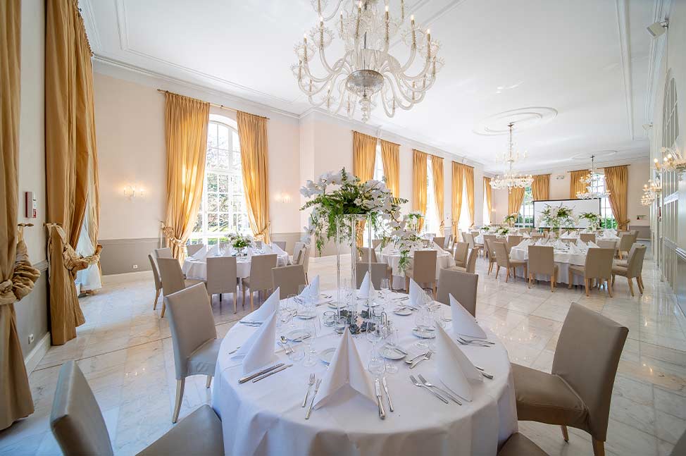 Discover the Orangerie – prestige building nestled in greenery, as well as the prestige setting of the Al Thermen, with their elegant lounges and the banquet hall that can accommodate up to 400 people.