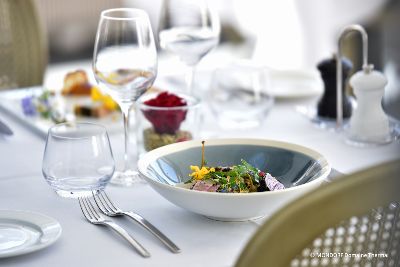 Fidèle à la philosophie culinaire du Domaine Thermal, le Chef du De Jangeli travaille exclusivement avec des produits frais et de saison pour vous garantir des plats sains, savoureux et de qualité. Il vous propose une cuisine raffinée, agrémentée d’une touche de créativité, une cuisine dite bistronomique.